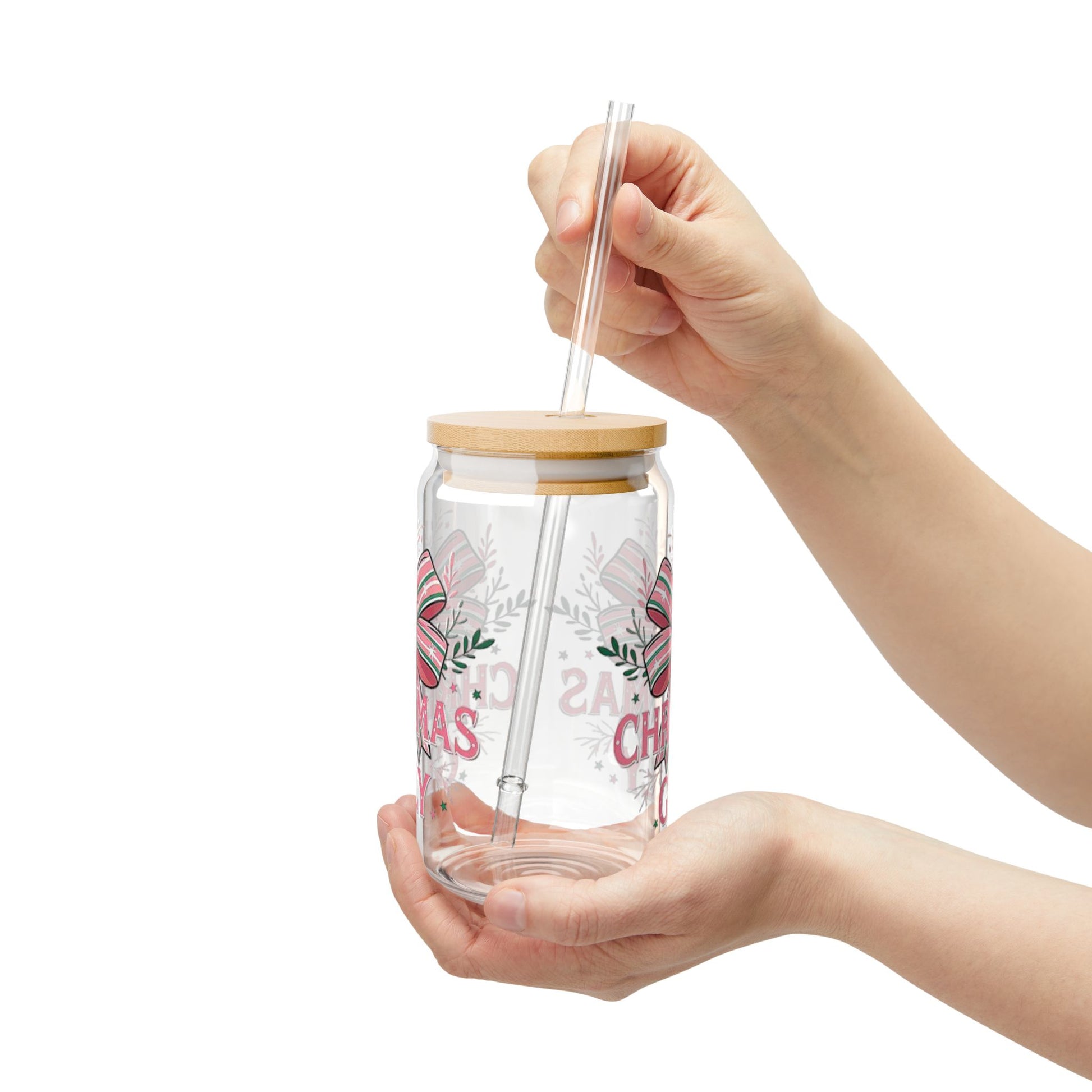 Christmas-Themed Sipper Glass, 16oz | Holiday Drinkware, Gift for Her, Eco-Friendly, Fun Kitchen Decor, Seasonal Party Accessory