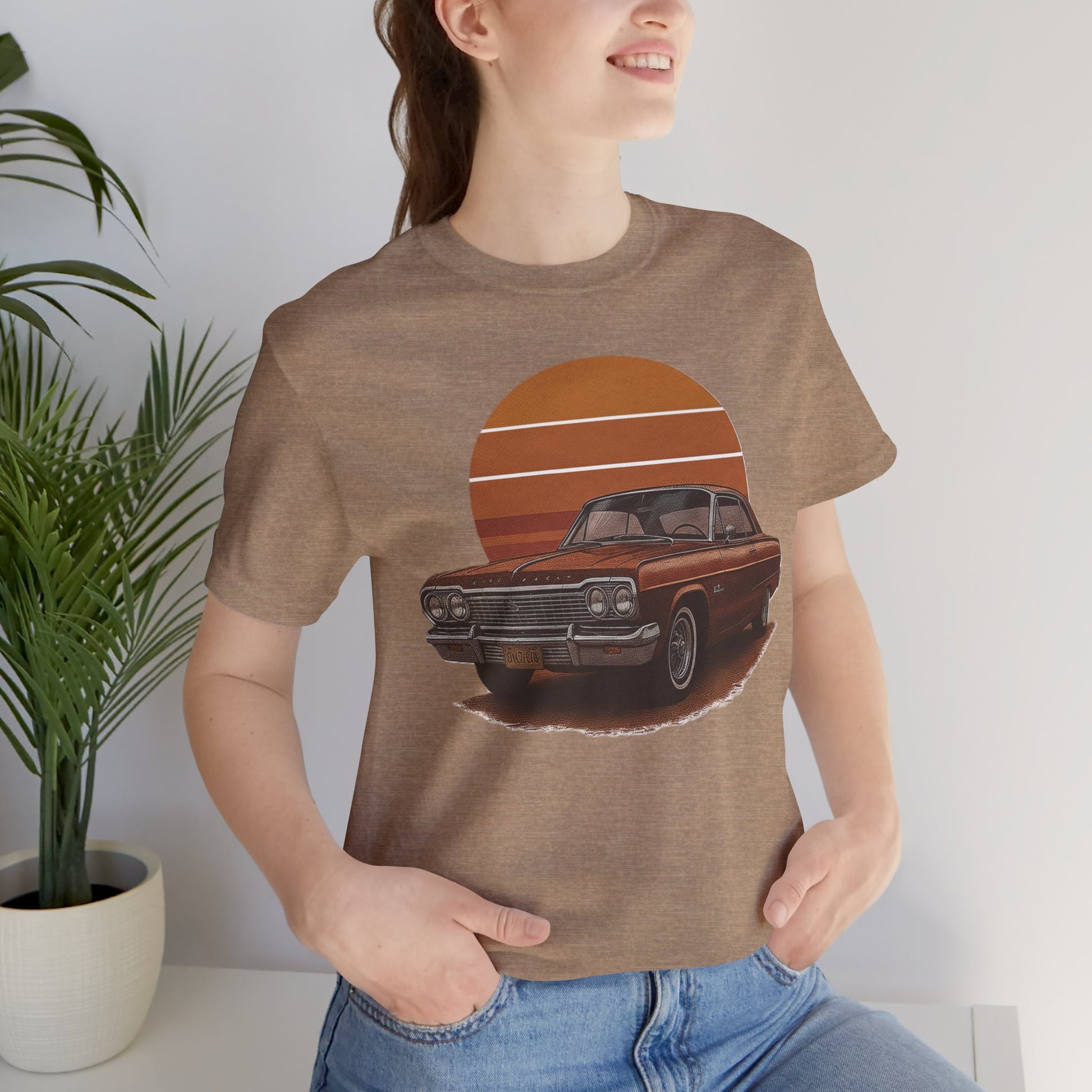 Retro Car Graphic Tee - Vintage Sunset Shirt, Perfect for Car Lovers, Gift for Him, Summer Style, Casual Wear, Unisex Fashion